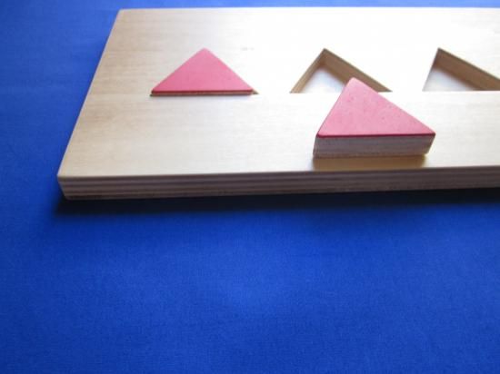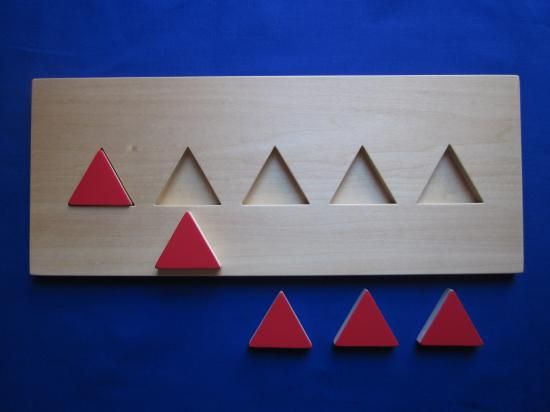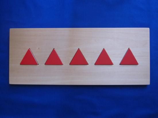 一辺 約5cmの▲(正三角形)が5個、横並びに整列しています。